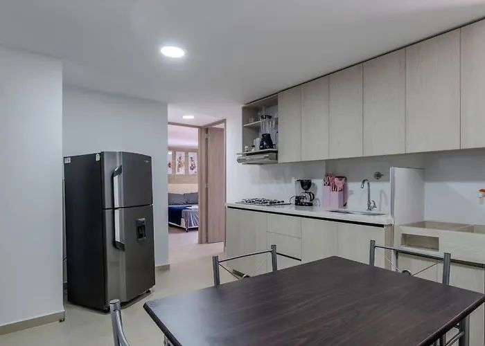 Апартаменти Apartamento 2Br Parqueadero Y Piscina 502 Медельїн мають приватне розташування та передбачають легкий доступ до парку "Ботеро Плаза", місця, де гості можуть робити покупки, розташованого на відстані 25 хвилин ходьби. В апартаментах також надається Wi-Fi і безкоштовна приватна парковка.